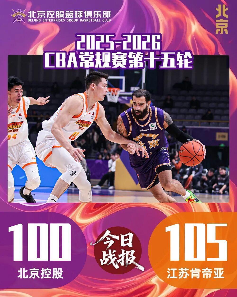 1月15日,北控男篮坐镇主场对阵江苏肯帝亚。本场比赛面对此前9连败的对手,北控男篮防守端全面失守,让对手打出高效进攻转化,最终100:105不敌江苏肯帝亚。